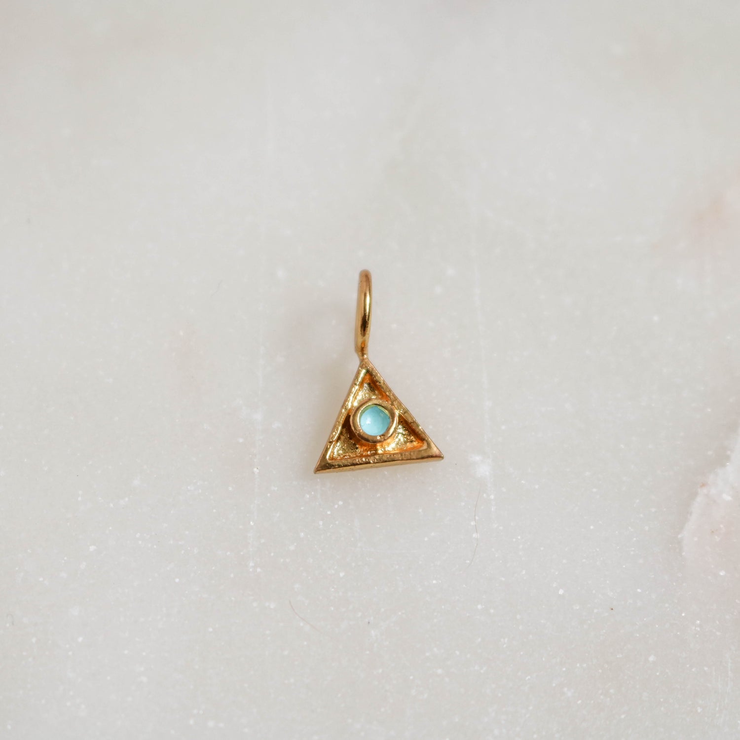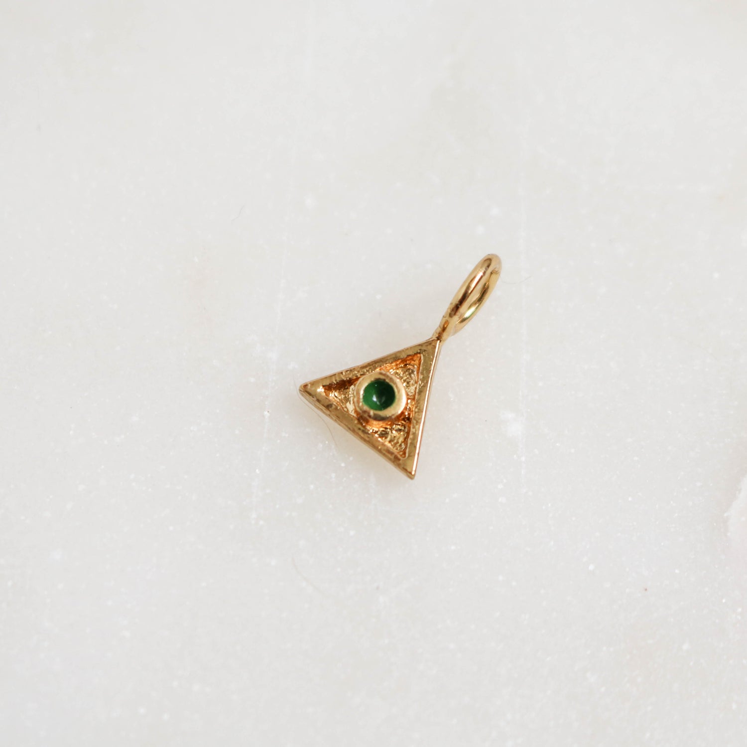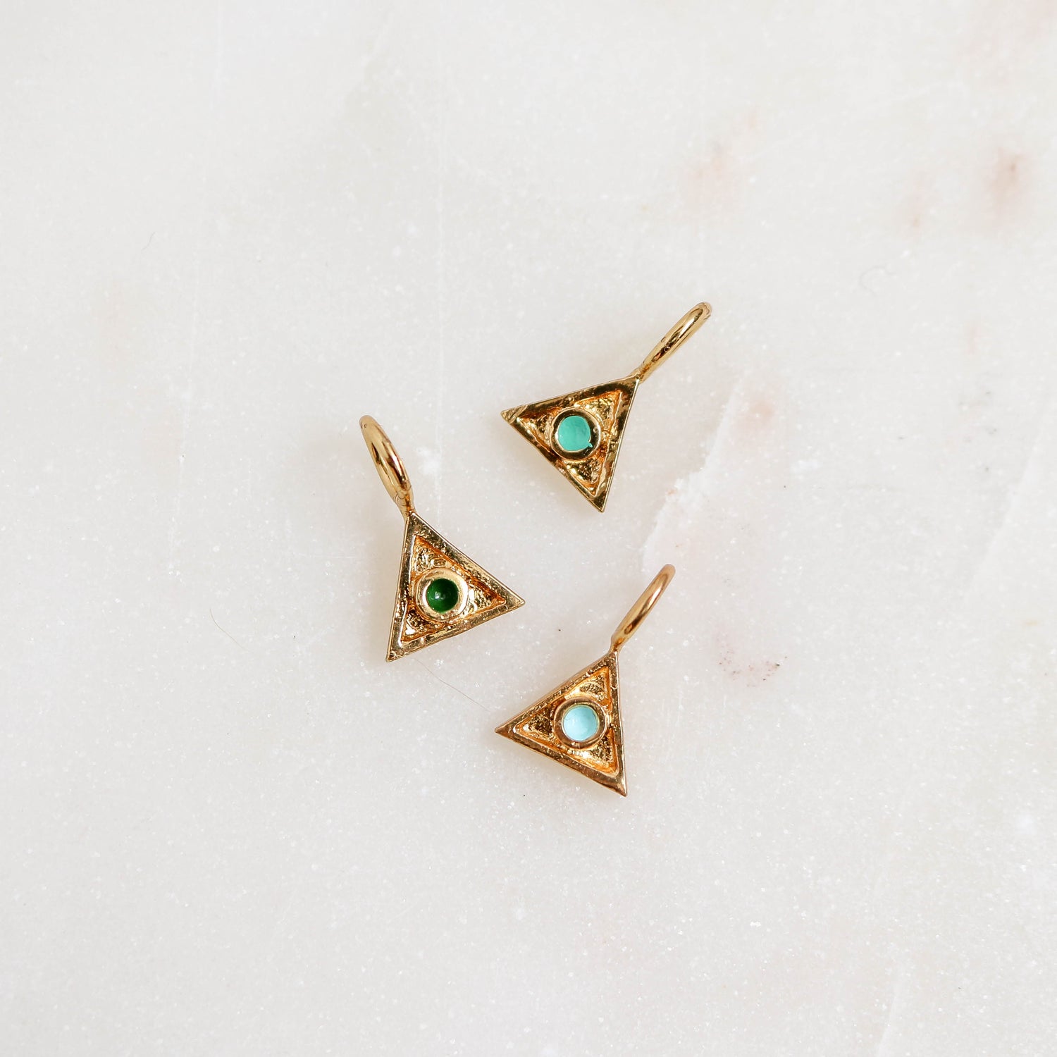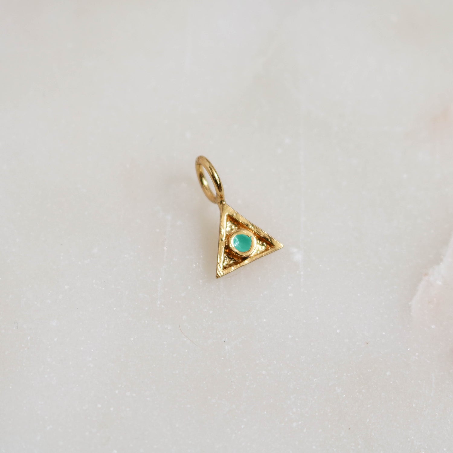 Dije tallado a mano y vaciado en bronce con baño de oro 18K con un toque de color.